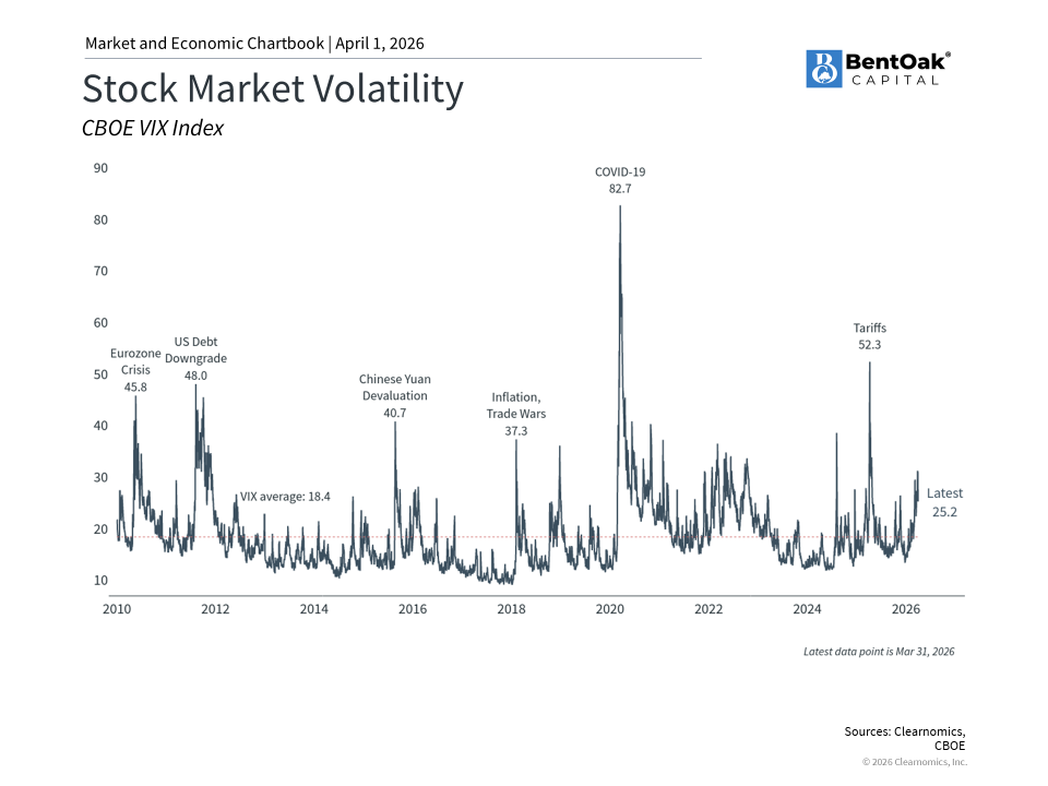 Rising oil prices and ongoing geopolitical tensions have been the dominant forces behind stock market fluctuations in recent weeks. Brent crude oil hovering around $100 per barrel, prompting concerns that elevated energy costs could simultaneously dampen economic growth and push inflation higher.1 These developments compound existing worries, including the influence of artificial intelligence on established businesses, broad market valuations, private credit, and the future direction of Federal Reserve policy. Understandably, investors may find themselves questioning the resilience of their portfolios.